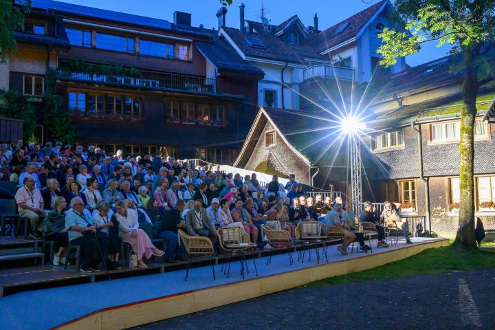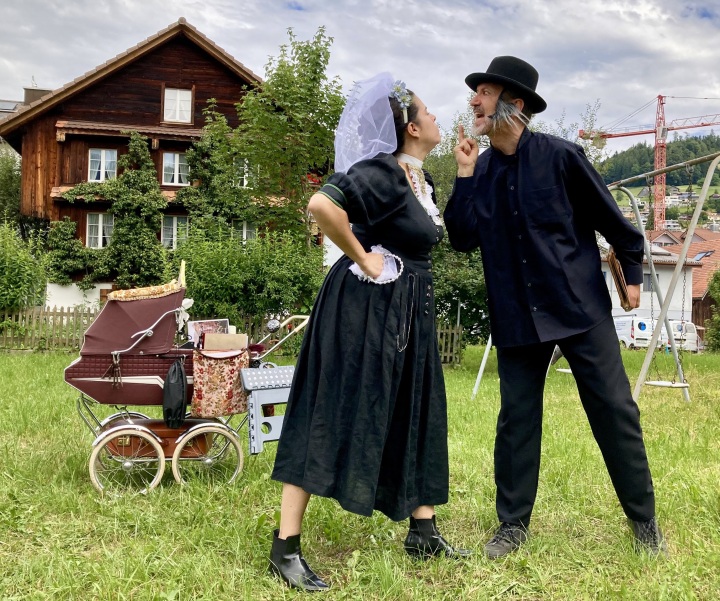 Bei der Theatertour Ägeri spielen die Darstellenden elf Rollen. Judith Stadlin schrieb das Stück und führte Regie. Mittlerweile geht die Tour durchs Dorf in die vierte Saison. (Es spielen: Olivia Betschart, Jasmin Gasser, Tamara Löhri, René Weber und Daniel Steiner.)